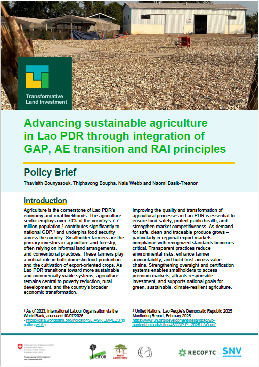Integrating LaoGAP, AE and ASEAN Responsible Agricultural Investment (RAI) principles could close this gap โ supporting farmers not just to produce sustainably, but to earn more from doing so.