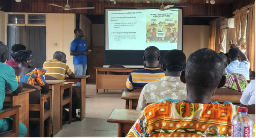 The training opened with a session on Promoting Agroecology for Sustainable Land Use, facilitated by Ransford Sackey of Kasa Initiative Ghana. He began by acknowledging the changing climate realities in Ghana – from unpredictable rains to prolonged dry spells – and framed agroecology as both an ecological and social solution.